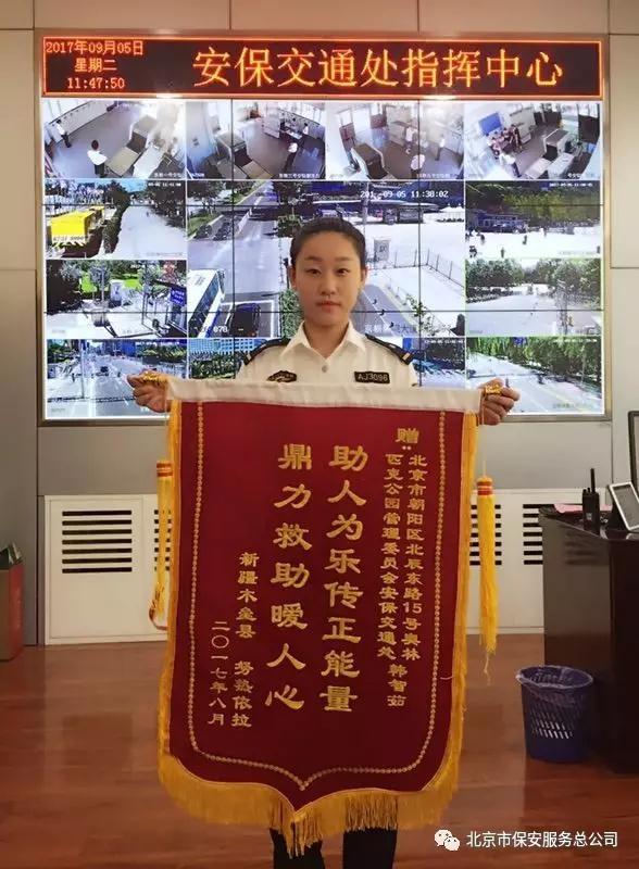 9月4日上午,奧林匹克公園管理委員會(huì )安保交通處收到了遠在千里之外的新疆木壘縣努熱依拉女士寄來(lái)的錦旗和感謝信。感謝朝陽(yáng)保安分公司駐奧林匹克公園安檢隊女隊長(cháng)韓智茹以實(shí)際行動(dòng)傳遞的正能量,溫暖了千里之外那一顆顆焦灼不安的心。