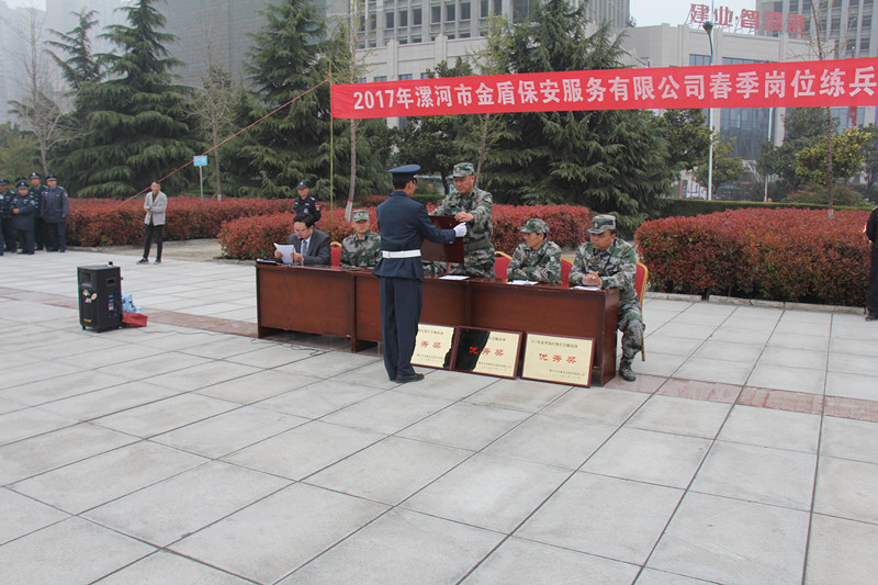 漯河市金盾保安服務(wù)有限公司本著(zhù)“立足崗位練兵、重在集訓提高”的練兵要求,公司從3月1日-3月30日開(kāi)展全體隊員春季崗位大練兵活動(dòng),為確保這次“大練兵”活動(dòng)有序開(kāi)展,切實(shí)收到實(shí)效,上到公司總經(jīng)理,下到大隊長(cháng)等公司相關(guān)人員積極探討,精心組織,周密安排,堅持高標準、嚴要求,本次練兵活動(dòng)于3月31日正式匯報演練。