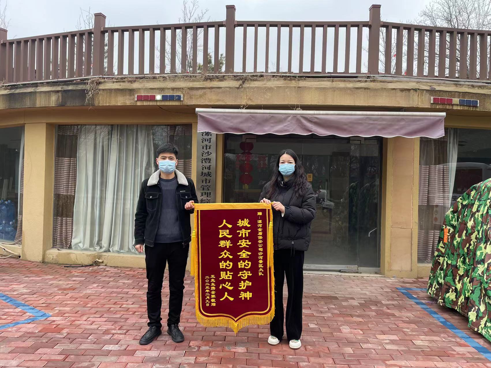 1月31日晚上八點(diǎn)半,漯河市沙澧河風(fēng)景區保安員陳偉和陳海福正在紅楓廣場(chǎng)執勤,突然發(fā)現一名小朋友在路邊著(zhù)急的哭泣。見(jiàn)此情況,陳偉和陳海福立即跑到男孩身邊,安撫他的情緒,并將其安全帶到游客服務(wù)中心,耐心與其交流,經(jīng)了解得知原來(lái)是男孩在此游玩與家人走散了。在穩定小孩不安的情緒后,陳海福詢(xún)問(wèn)出其家長(cháng)的電話(huà)號碼并成功聯(lián)系上孩子的親屬。隨后,男孩的母親趕到現場(chǎng),在詳細核實(shí)信息并經(jīng)小孩確認后,保安將孩子交給家屬。當看到孩子安然無(wú)恙,孩子母親激動(dòng)地連聲道謝。幾天后,男孩的爸爸還送來(lái)一面錦旗向我公司保安員表達了由衷的感謝。